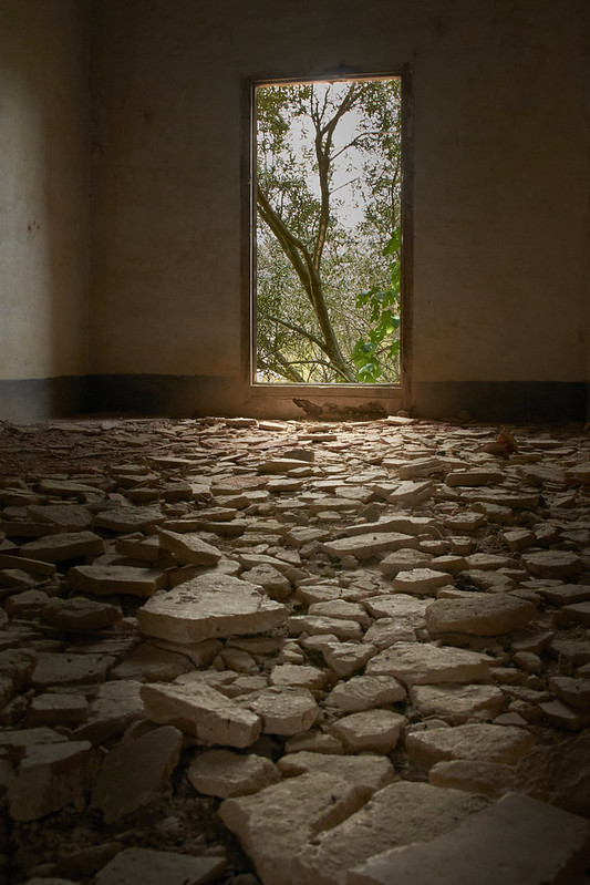 Para mi tiene un mensaje brutal. El interior abandonado, devastado, contrasta con el exterior, silvestre, frondoso, casi selvático. Al contemplarlo, en seguida me viene a la mente cómo es el interior del ser humano cuando está lejos de Dios.